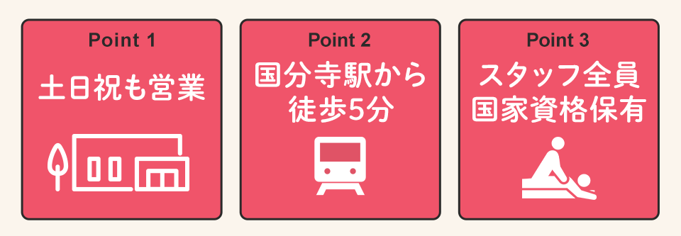 - 土日祝日も営業しているから通いやすい!