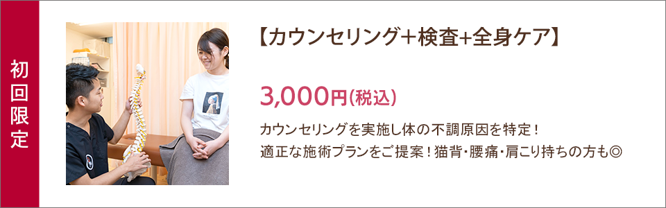 ※保険施術を行う場合、初回のみ問診検査料1,000円がかかります